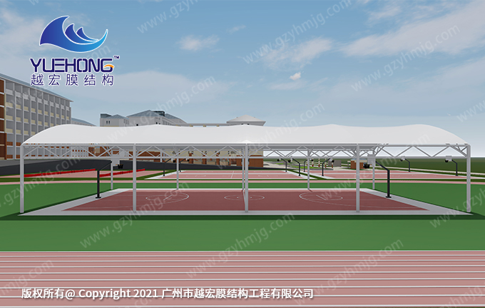 越宏膜結構廠家的風雨球場膜結構是由鋼結構和膜材組成,分別有張拉式膜結構、索膜結構、骨架式膜結構、空間結構式等供選擇,根據不同場景進行設計出個性化膜結構。