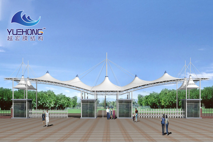 廣州膜結(jié)構(gòu)廠家門口廊道設(shè)施服務(wù)范圍:學(xué)校門口、工廠門口、公司門口、各種建筑樓門口等等。已成為人們視覺最先接觸的部分,還應(yīng)具有了很強(qiáng)的標(biāo)識(shí)性。并且能體現(xiàn)出建筑入口的個(gè)性以及屬是屋頂經(jīng)常采用的形式。