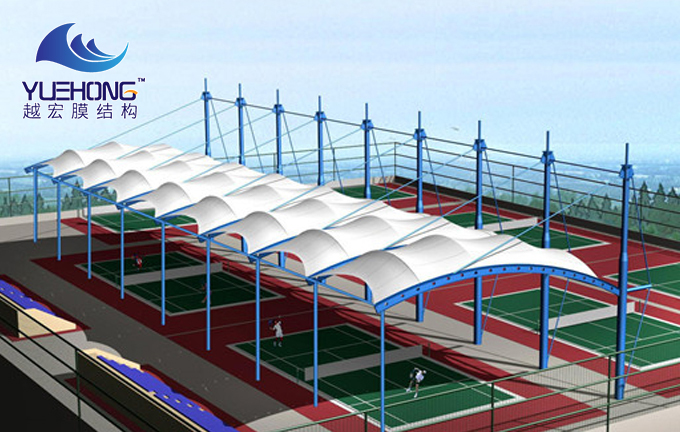 膜結構廠家服務體育設施范圍包括:體育場看臺、網球場、籃球場、高爾夫球場、游泳館等等。各種運動場館都能搭建膜結構遮陽棚,其造型個性化,能承受一定荷載的空間結構形式,制作簡易、安裝快捷的特點,是現代化體育設施建筑理念。