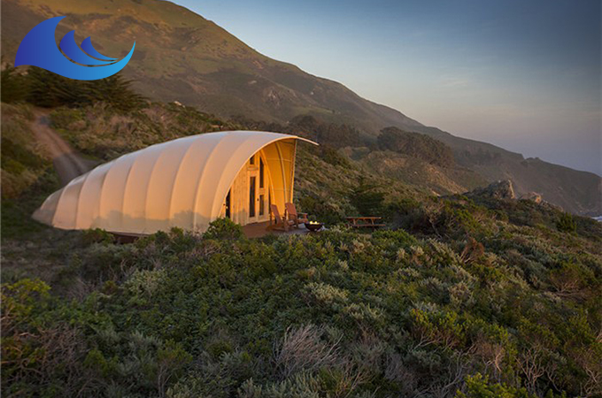 帳篷酒店采用高強度中空鋁合金結構或者是鋼結構,表面具備有防腐處理,優選膜結構頂棚,安全耐用,防水、阻燃、防紫外線。